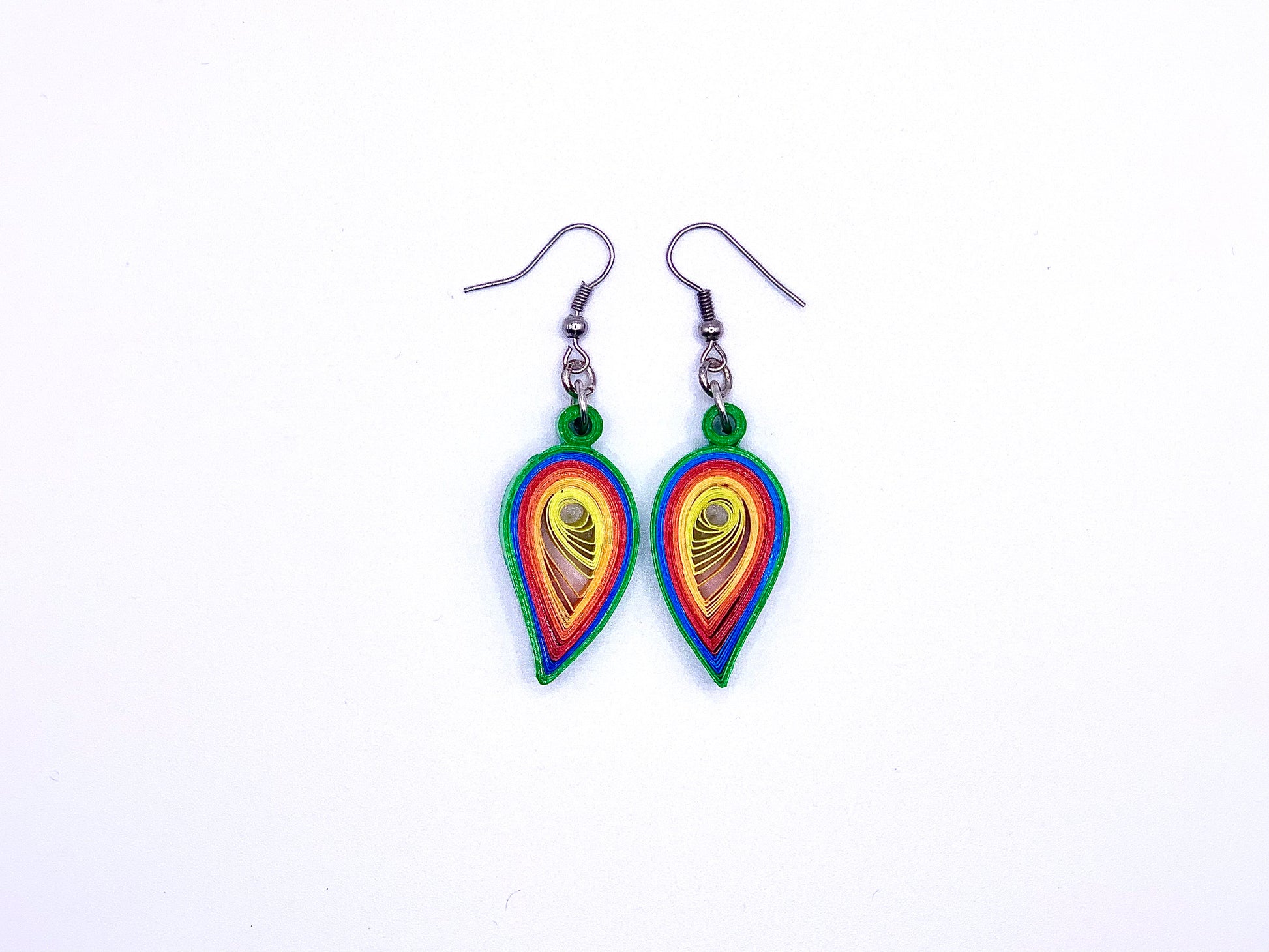 Green-Blue-Red-Orange-Yellow Quilled Earrings